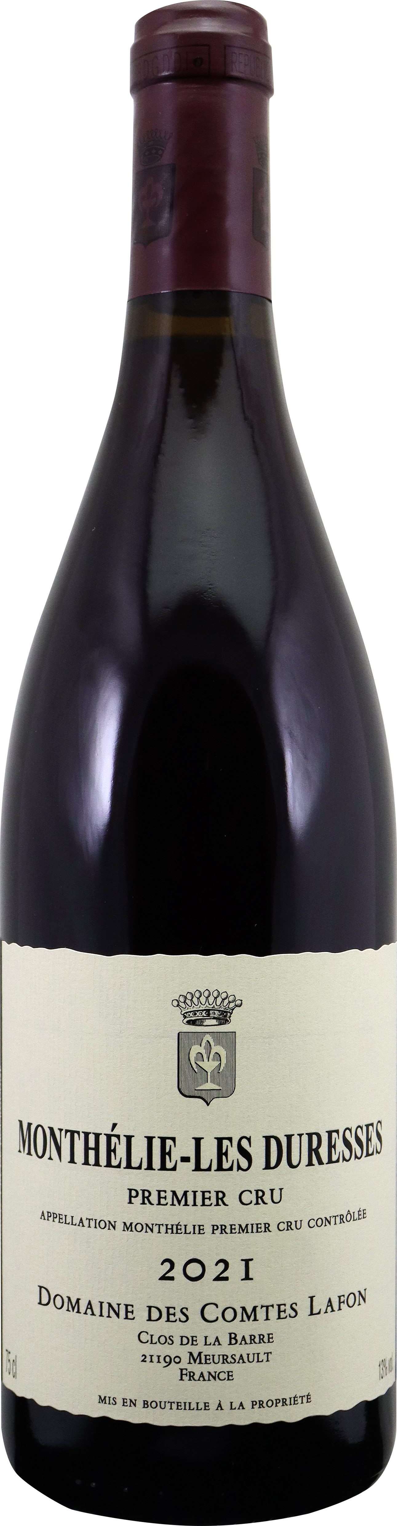 Der Monthélie Premier Cru Les Duresses 2021 von Domaine des Comtes Lafon bringt die besondere Qualität dieser Premier‑Cru‑Lage im Burgund deutlich zum Ausdruck. „Les Duresses“ liegt zwischen Meursault und Volnay mit einer Südost‑Ausrichtung und kalkhaltigen Böden, die eine präzise Mineralität und gute Drainage fördern. Der Jahrgang war von klimatischen Herausforderungen geprägt, wodurch die Trauben eine hohe Konzentration und aromatische Intensität entwickelten. In der Nase zeigt sich ein raffiniertes Bouquet mit Aromen reifer Kirschen, dunkler Beeren und floralen Noten von Veilchen. Am Gaumen bietet der Wein eine fein strukturierte Textur mit seidigen Tanninen, Noten von roten Johannisbeeren und Himbeeren sowie eine elegante Würze und präzise Mineralität. Der lange, elegante Abgang unterstreicht Tiefe und Finesse dieses Rotweins aus einem der interessantesten Premier‑Cru‑Terroirs des Burgunds.