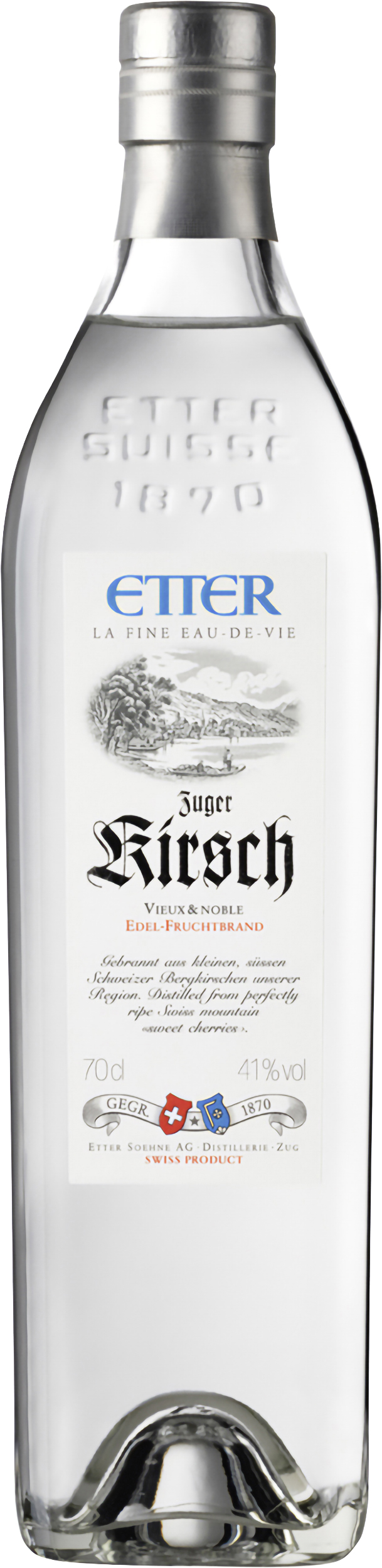 In der kleinen Hausbrennerei auf dem Bauerngut Berglihof in Menzingen bei Zug führt Landwirt Johann Baptist Etter anno 1823 ein Gläschen mit wasserklarer Flüssigkeit an die Lippen, nimmt ein Schlückchen und ist mit der Kostprobe höchst zufrieden. Der nebenberufliche Brenner hätte wohl nicht einmal zu träumen gewagt, dass sein Kirschwasser 47 Jahre später, um 1870, an den Start gehen sollte um die Welt zu erobern. Seine Söhne und die Kindes-Kinder haben Etter zu einer der bedeutendsten Distillerien der Schweiz gemacht und erzeugen den heimischen Zuger Kirsch sowie weitere delikate Fruchtbrände aus 100% Schweizer Obst. Hans Etter, der die Geschicke des Unternehmens von 1975 bis 2012 geprägt hat, gilt als der Pionier der mundgeblasenen Etter-Glasfruchtkaraffen und des Etter Fruchtbaums. Heute setzen seine Tochter Eveline und Ihr Mann Gabriel Galliker-Etter mit derselben Leidenschaft für feine Brände wie ihre Vorfahren die Familientradition fort. Und wenn Lenz, Orell und Lior unter den Kirschbäumen Fangen spielen, dann merkt man, wie lebendig die Etter-Familiengeschichte ist. Mit den drei Jungs wächst nun bereits die 5. Generation Etter heran. Im Herzen des Kirschenlands Zug umgeben von Hügeln und Bergen, nur wenige Gehminuten vom Zugersee entfernt, liegt die sehenswerte Brennerei des Hauses Etter. Besucher sind jederzeit herzlichst willkommen und wer nicht nach Zug kommen kann, der findet viel Wissenswertes rund um Etter, Bilder und Beschreibungen unter www.etter-distillerie.ch oder befreundet sich mit Etters via Facebook.