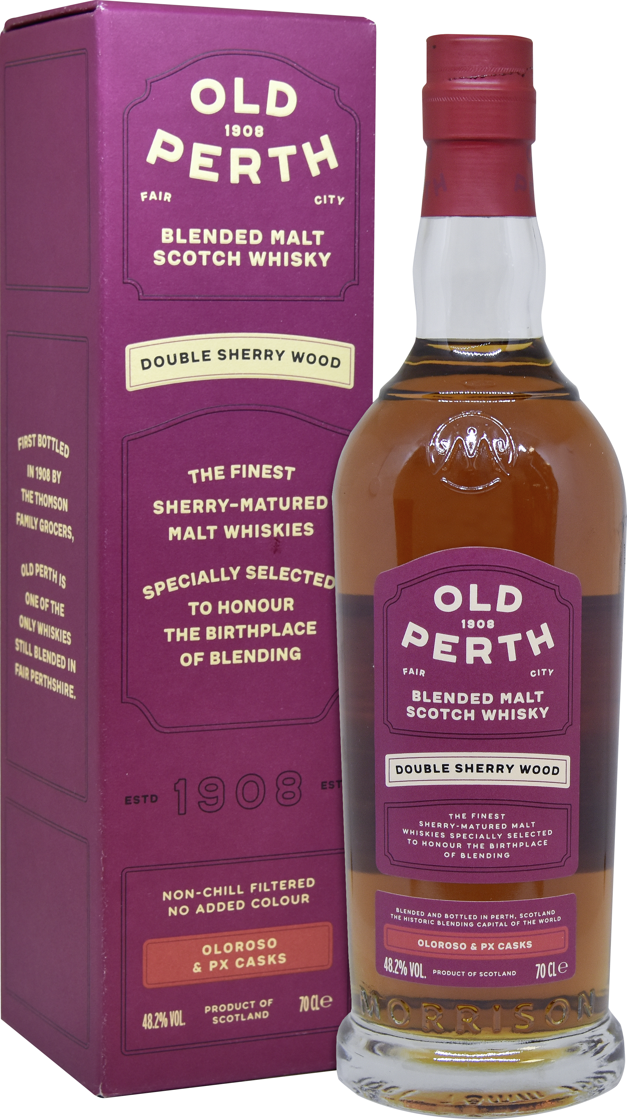 "Old Perth" ist eine Hommage an die Geschichte der Stadt Perth in Schottland und bietet eine Auswahl an Blended Malt Scotch Whiskies. Diese Whiskies werden aus einer Vielzahl von Single Malts komponiert und vereinen die besten Eigenschaften der verschiedenen Regionen Schottlands.