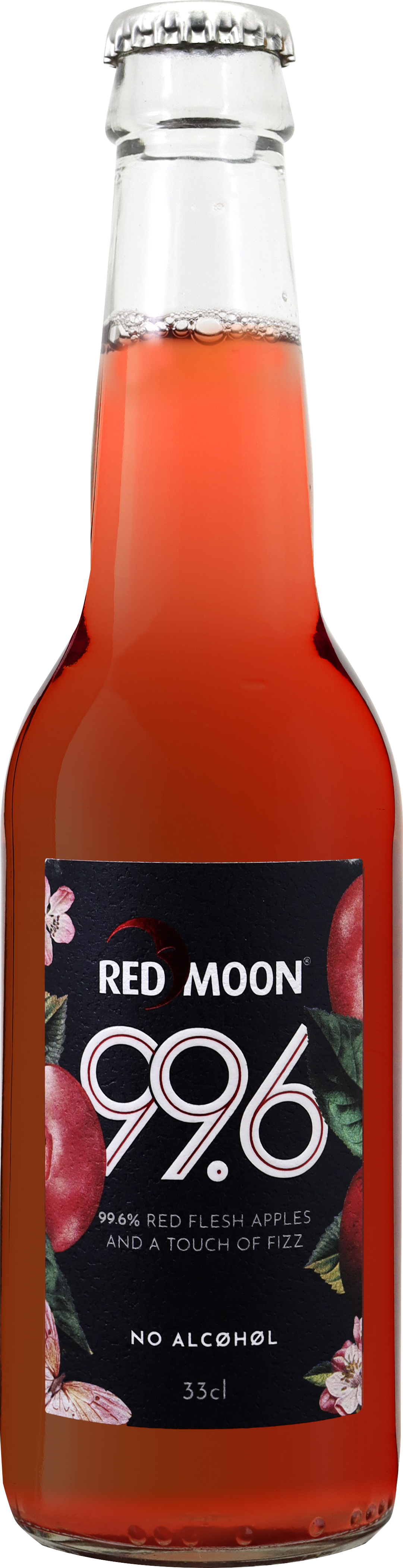 Red Moon 99.6 Sparkling ist ein alkoholfreier Botanical Sparkling Aperitif für Gastronomie, Bar und Handel – auffällig in der Farbe, klar im Profil und vielseitig einsetzbar. Die Rezeptur ist bewusst puristisch: 99,6% Red Moon® Äpfel plus 0,4% Kohlensäure – sonst nichts. Ohne Zuckerzusatz, ohne Konservierungsstoffe.