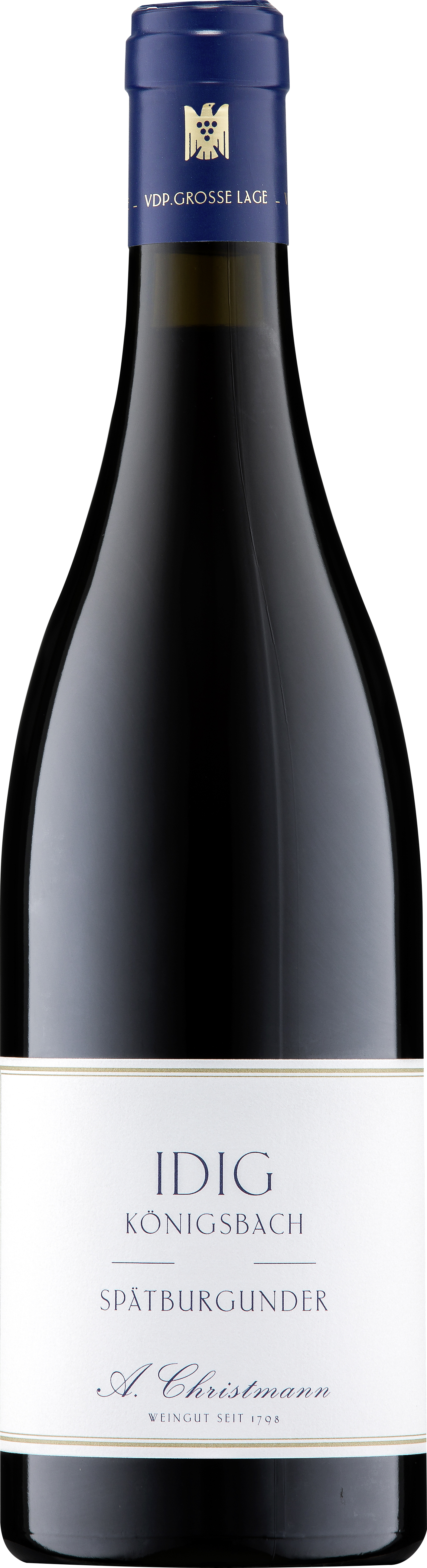 Der Königsbacher IDIG Spätburgunder GG vom Weingut A. Christmann ist ein herausragender trockener Rotwein aus einer der bedeutendsten VDP.GROSSEN LAGEN® der Pfalz – dem historischen Idig in Königsbach, dessen Kalk‑ und Terra‑Fusca‑Böden der Rebsorte Pinot Noir Tiefe, klare Mineralität und vielschichtige Struktur verleihen. Die Spätburgunderreben wachsen in zwei alten Parzellen, teils aus dem Jahr 1977, ergänzt durch eine 2008 gepflanzte Fläche mit französischen Klonen; die sorgfältige Handlese und spontane Gärung mit einem Anteil ganzer Trauben schafft die Basis für einen langlebigen, terroirbetonten Wein auf Weltklasseniveau. Die anschließende Barrique‑Reife über viele Monate mit geringer Erstbelegung harmonisiert perfekt mit dem aromatischen Potenzial dieses Großen Gewächses und ergibt einen Pinot Noir mit intensiver Frucht, seidigen Tanninen und einer klaren, eleganten Struktur. Im Glas zeigt der IDIG Spätburgunder GG ein tiefes Rubinrot; in der Nase verbinden sich dunkle Kirsche, Pflaume, Himbeere und florale Nuancen mit dezenten Kräuter‑ und Gewürznoten, die von der mineralischen Salzigkeit des Terroirs getragen werden. Am Gaumen überzeugt dieser trockene Großes Gewächs‑Spätburgunder durch feine Balance, präsente Säure und einen langen, eleganten Abgang, der Potenzial für weitere Reifejahre besitzt. Dieser Wein ist ein beeindruckender Ausdruck pfälzischer Burgundertradition und zeigt, wie biodynamisch erzeugter Spätburgunder aus großen Lagen sowohl Komplexität als auch Trinkfluss vereint – ideal für anspruchsvolle Genießermomente oder festliche Anlässe.
